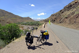 desniveles más que imposibles hasta que veo a una pareja de cicloturistas que cruzan la carretera y se paran a saludarme. Son una pareja holandesa que llevan unos 20 días recorriendo marruecos, yo les digo más o menos cual es mi ruta y después de hablar un rato ellos siguen bajando y yo sigo subiendo.